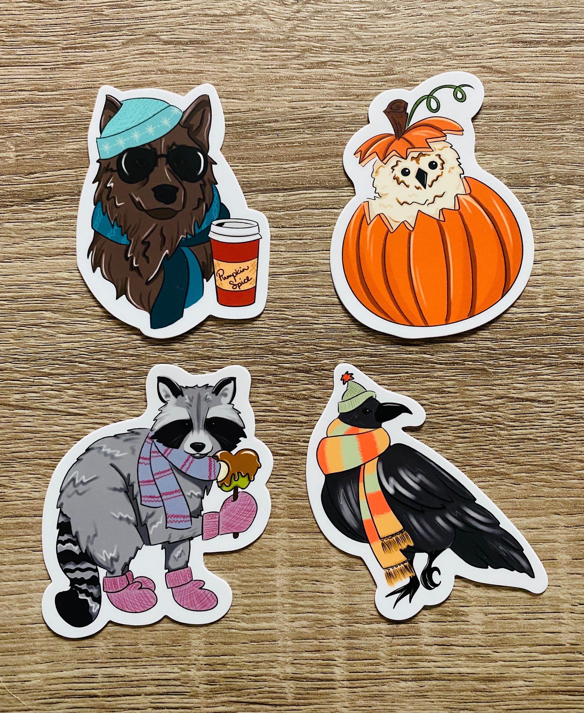 Owlet - 2.3"x3"/ Raccoon - 2.6"x3"/ Wolf - 2.25"x3"/ Raven - 2.25"x3"