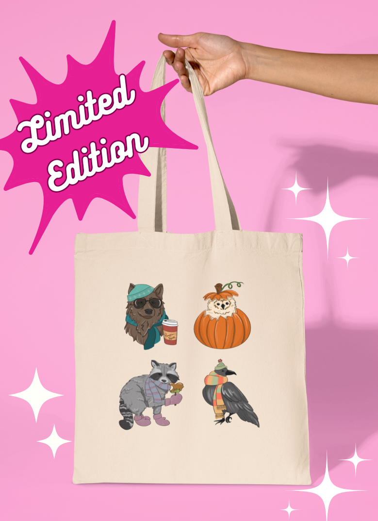 This tote bag with cute fall shifters will only be available through November, so snap it up before the winter edition replaces it!